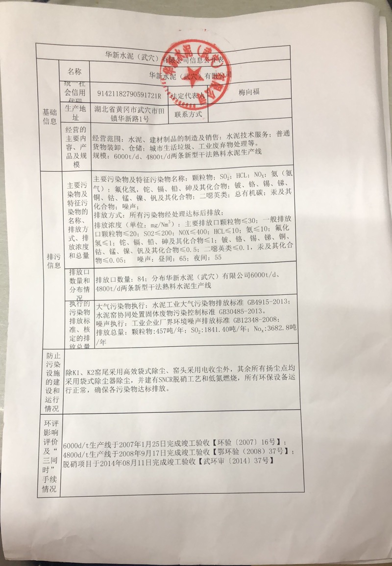 2、華新水泥(武穴)有限公司2021年第三季度監(jiān)測(cè)方案